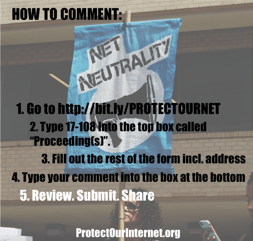 4. Sign up if you haven’t already at ProtectOurInternet.org in order to stay tuned for more actions directly targeting this plan of Telecom thievery. We need to comment for sure but comments alone will not win this fight.