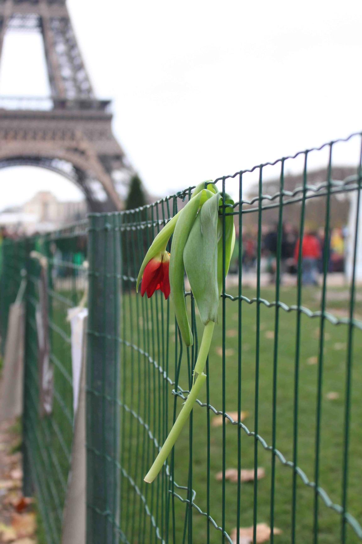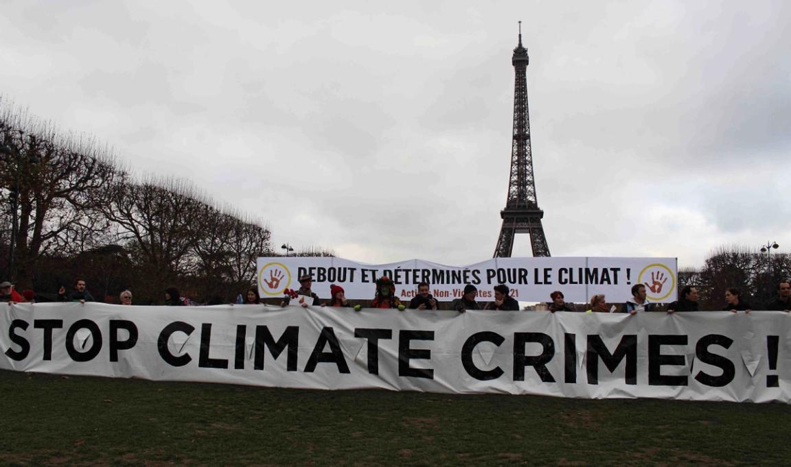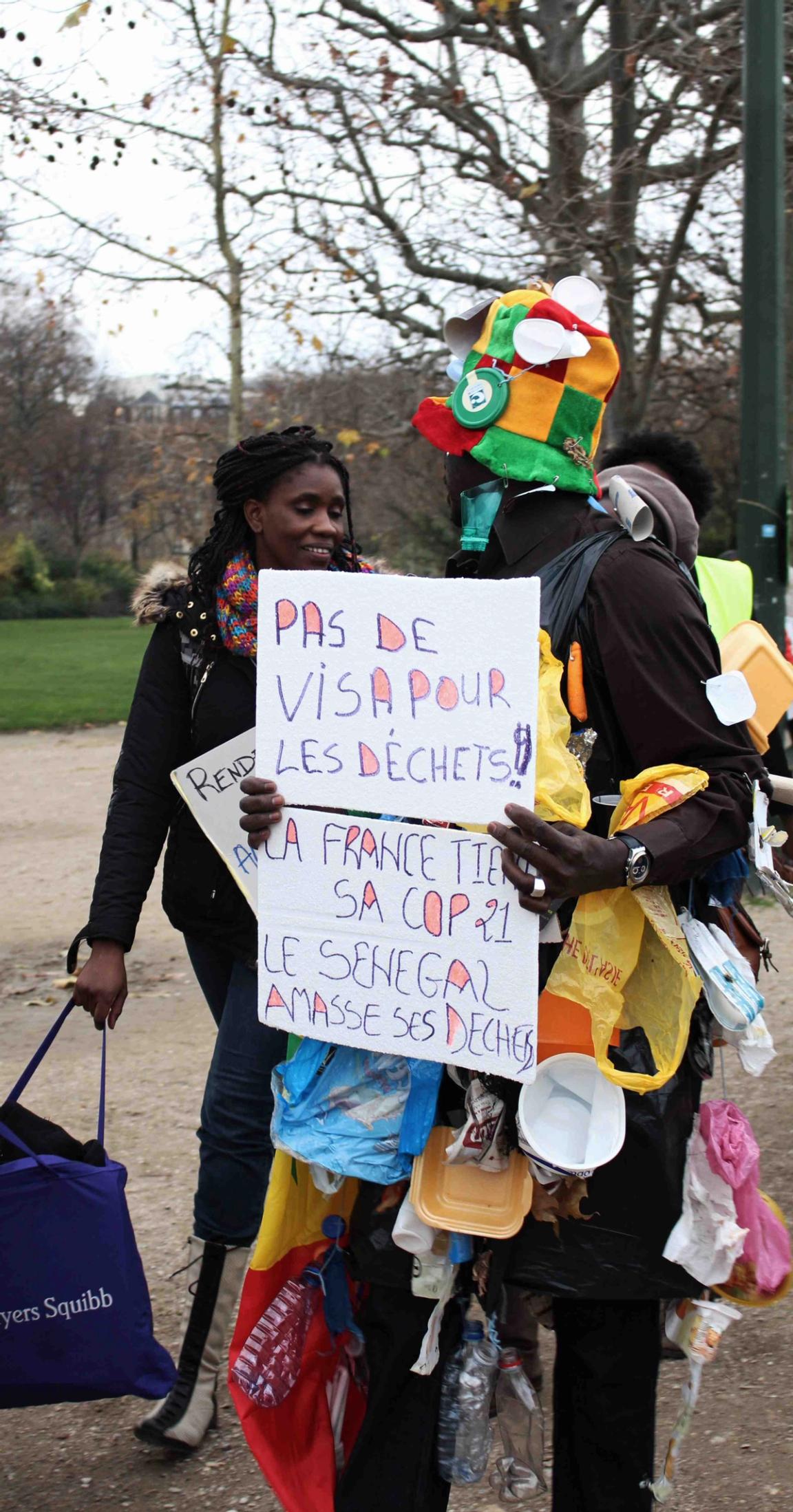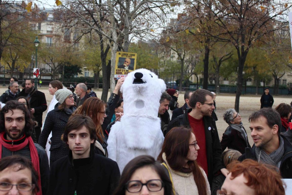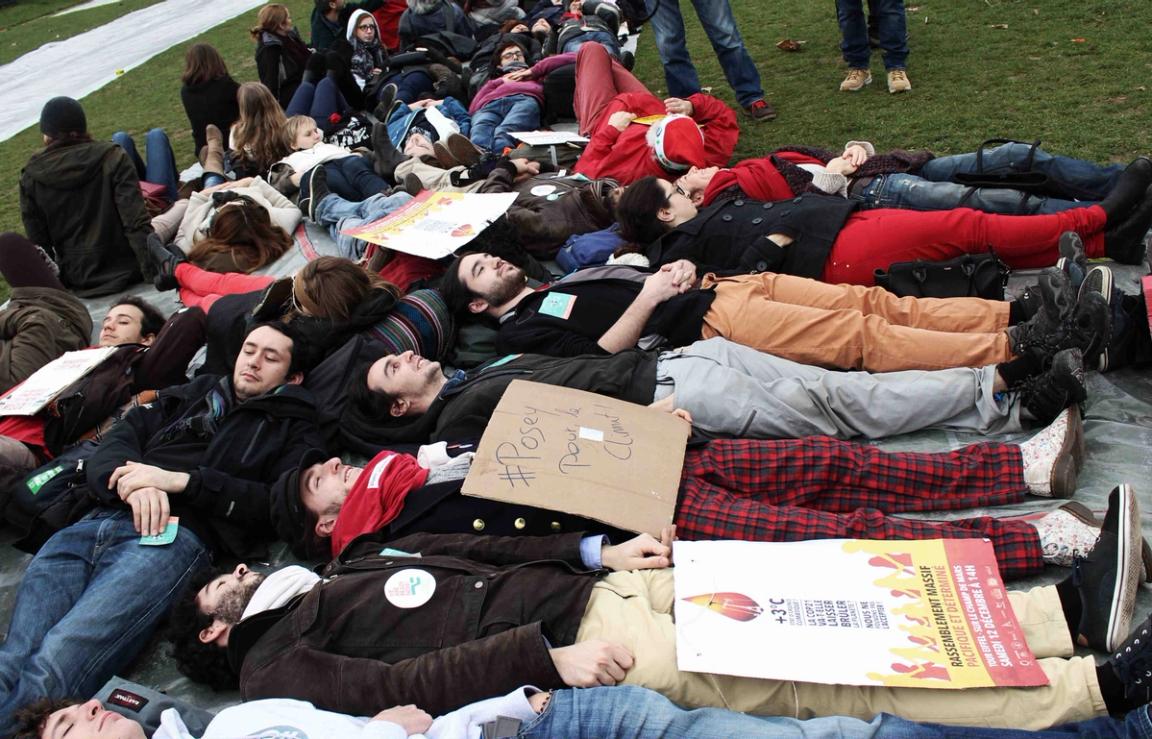 In the afternoon of D12, the final action – organized by a coalition of groups – featured a human chain around Champs de Mars, the open rectangular field directly beneath the Eiffel Tower. Organizers also grouped protestors onto pre-laid markers to spell out +3 degrees, the rise in global temperatures that we’re facing due to governmental inaction.