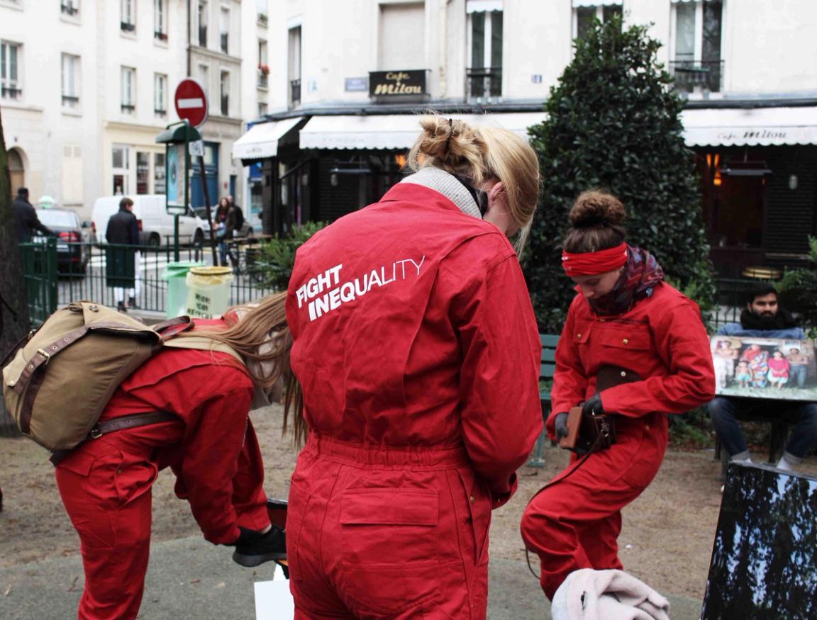 Fight inequality in red jumpsuits