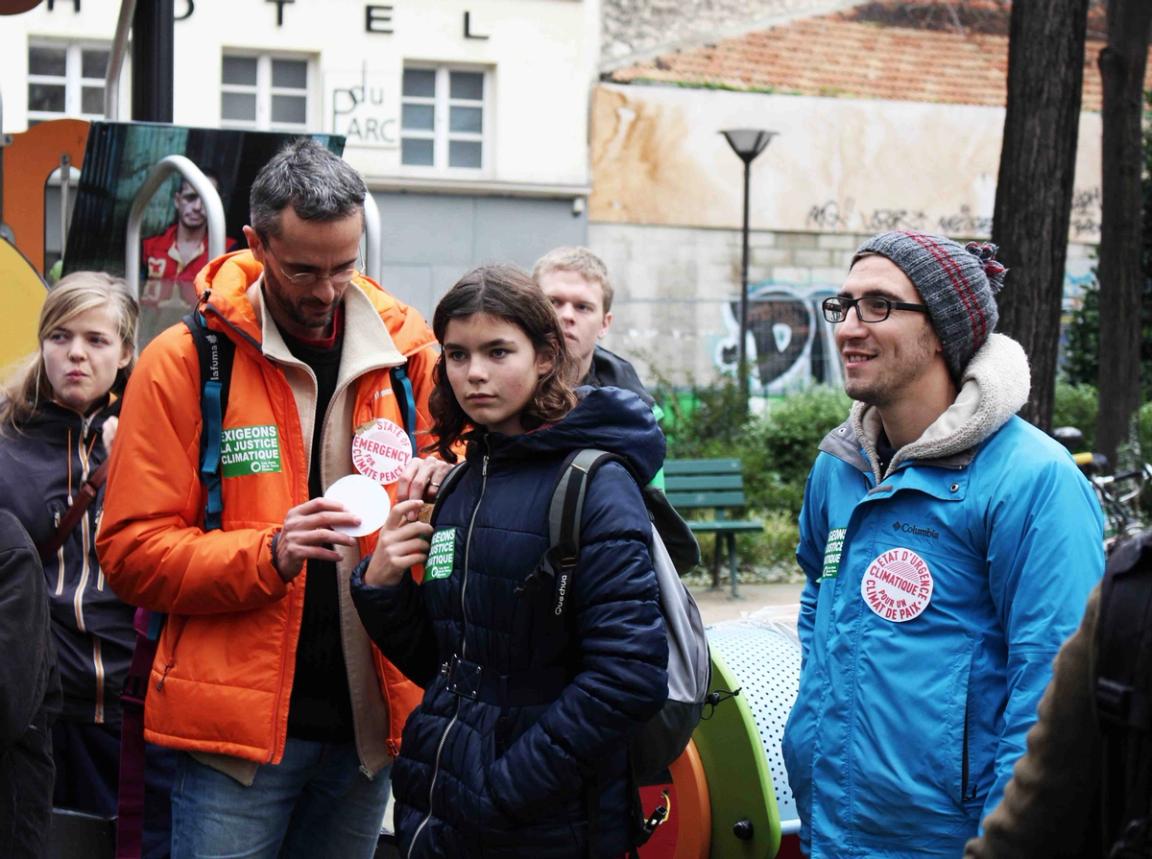 This morning, Les Amis de la Terre (Friends of the Earth) and Peuples Solidaires organized a geo-location protest throughout Paris. The objective: to write out CLIMATE JUSTICE PEACE across Paris using the internet.