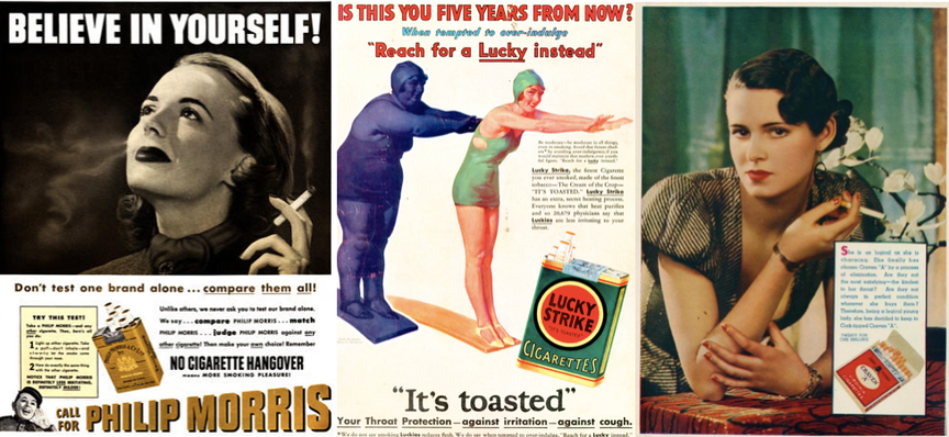 But before we get inextricably tangled in a web of bigotry and speech, let me offer up a sidestep palette cleanser that might give us some food for thought on censorship. If you were alive back in the 60s you would’ve seen a lot of cigarette ads calling out to you in public places and in media: the chic laissez-faire of their spokespeople – like rebel sirens in the midst of a banal sameness. In the earlier half of the 20th century, cigarette companies particularly interested in picking up female smokers ironically sold a painfully chic modern woman complete with a trim frame, no wrinkles and better moods lighting up a balanced blend of safely rebellious and nonchalantly sexy. Later on, kids were specifically targeted – because well, capitalism. Start ’em young and you’ve got a full lifetime (albeit a shorter lifespan) of repeat consumption.