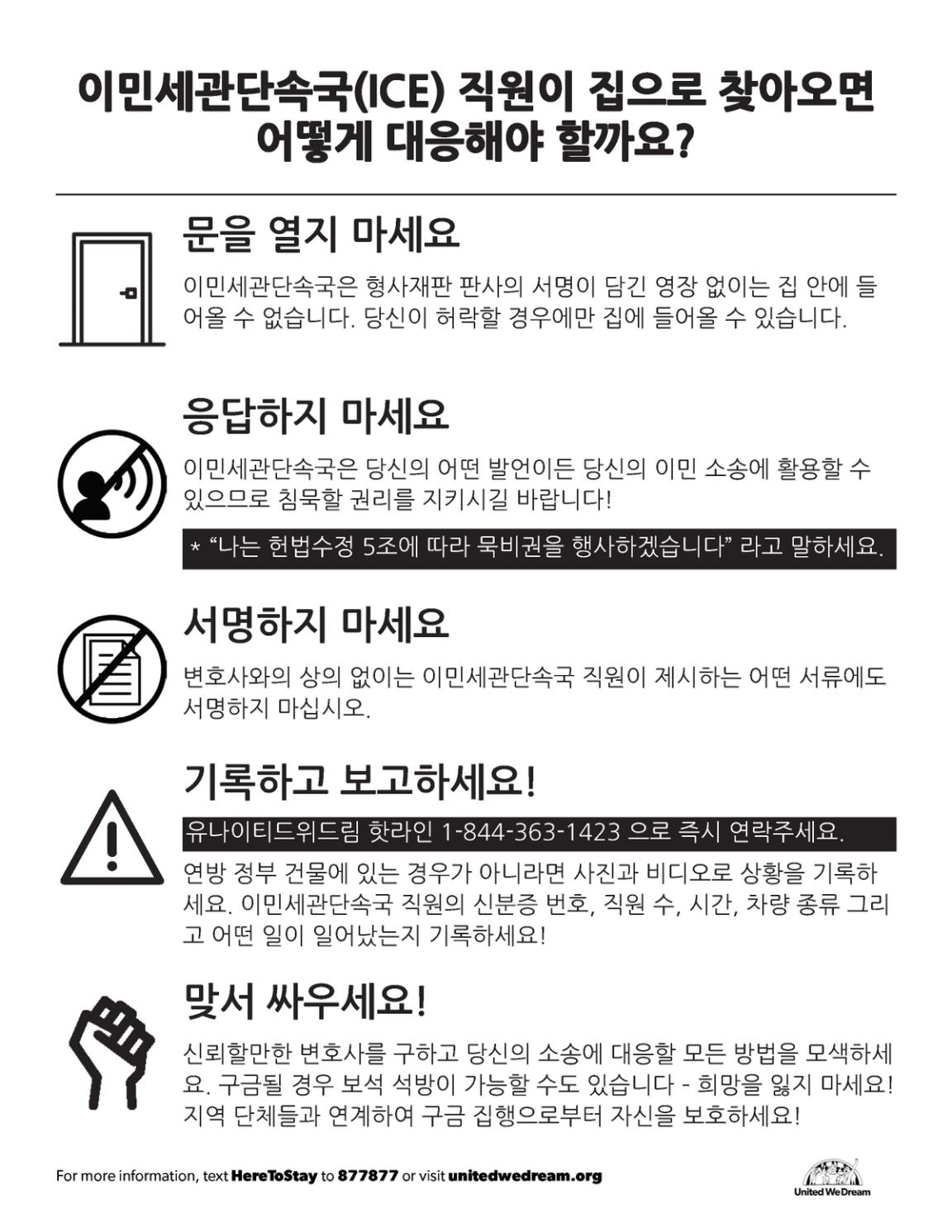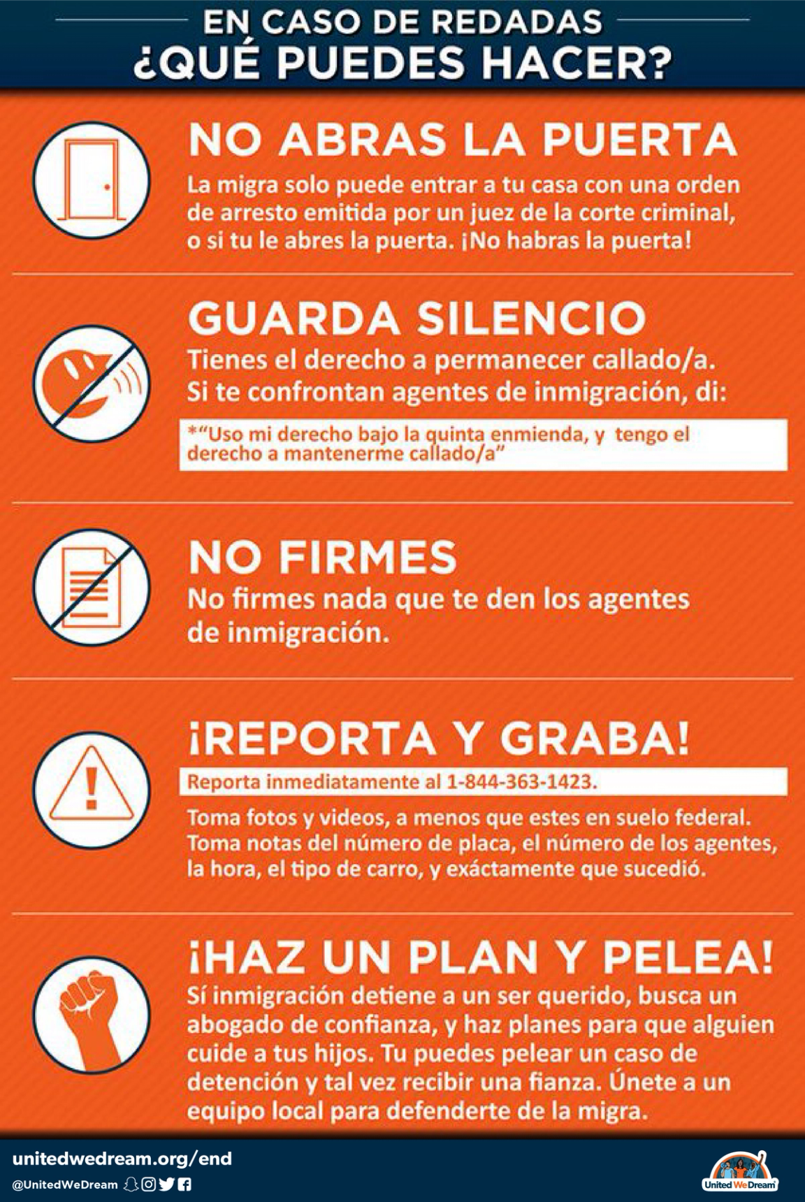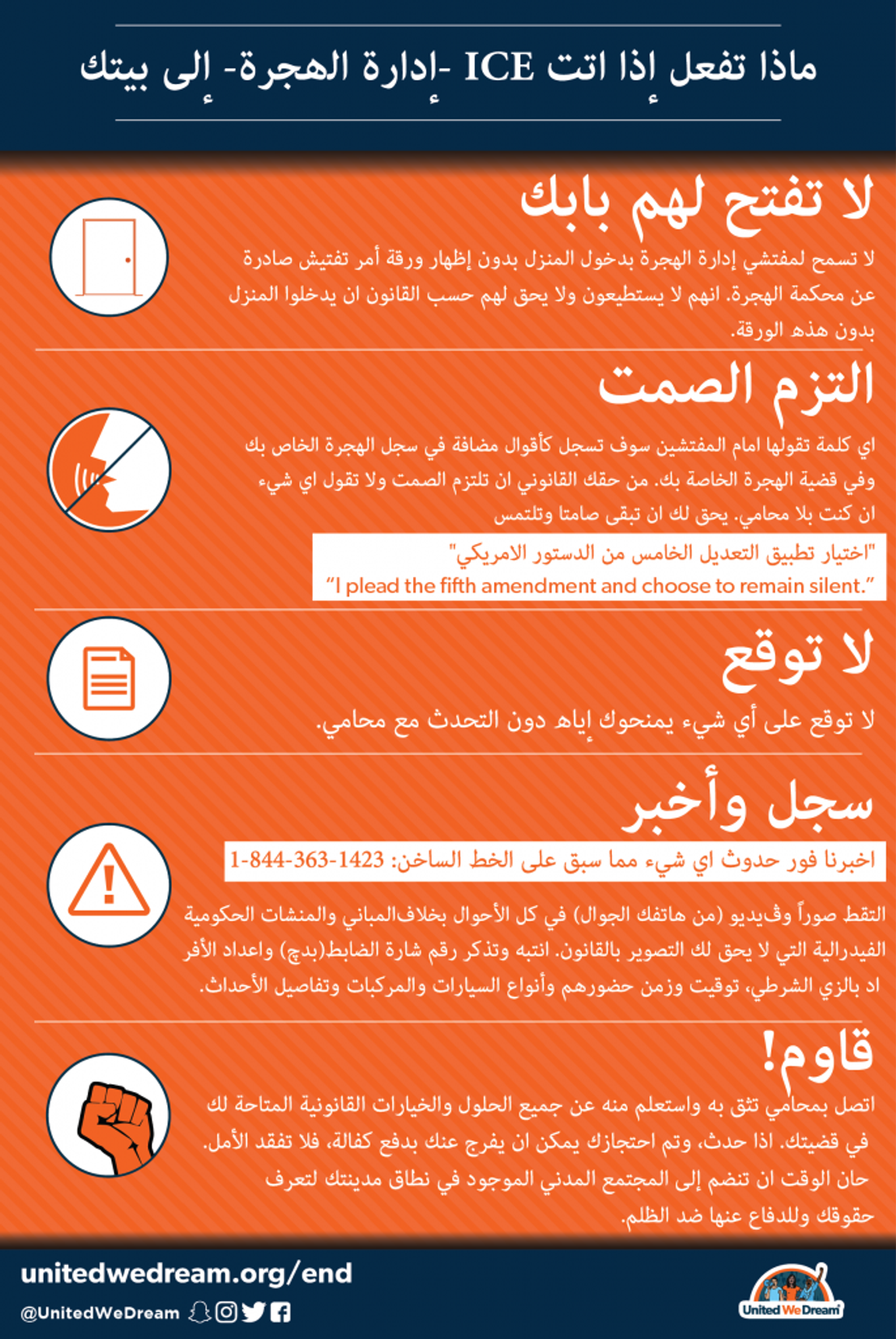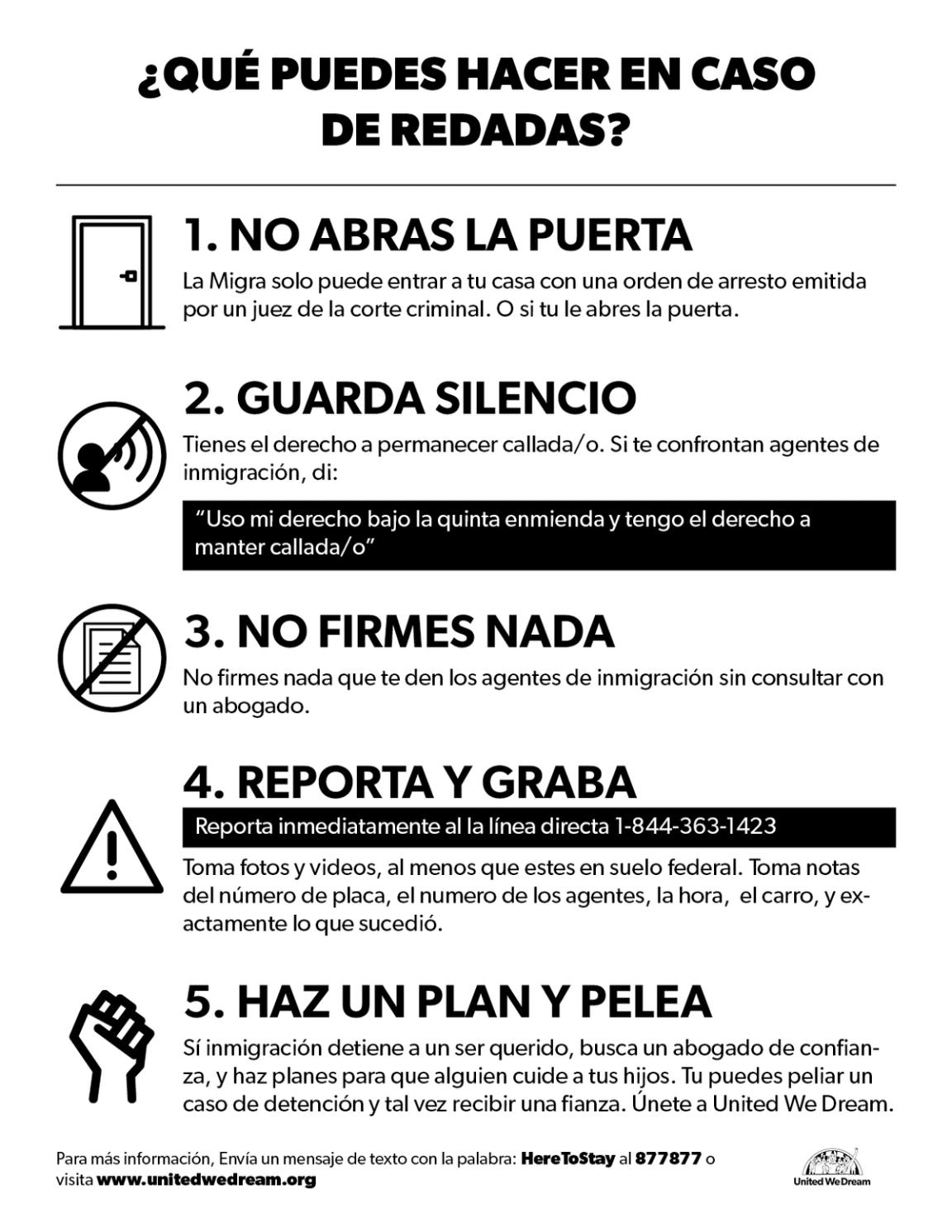 Use resources below to print out a print-friendly version of this page to tape on or near your door. That way, if an immigration officers approaches your home, you will be prepared and know what to do.