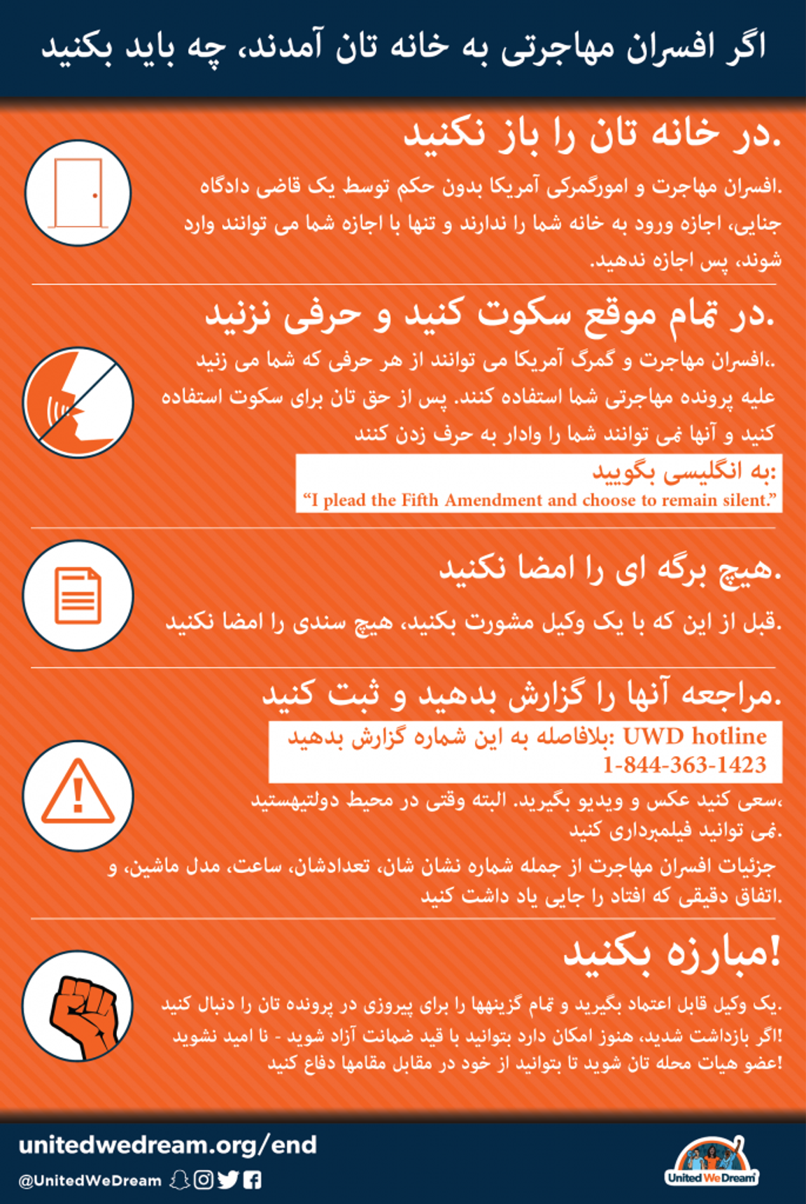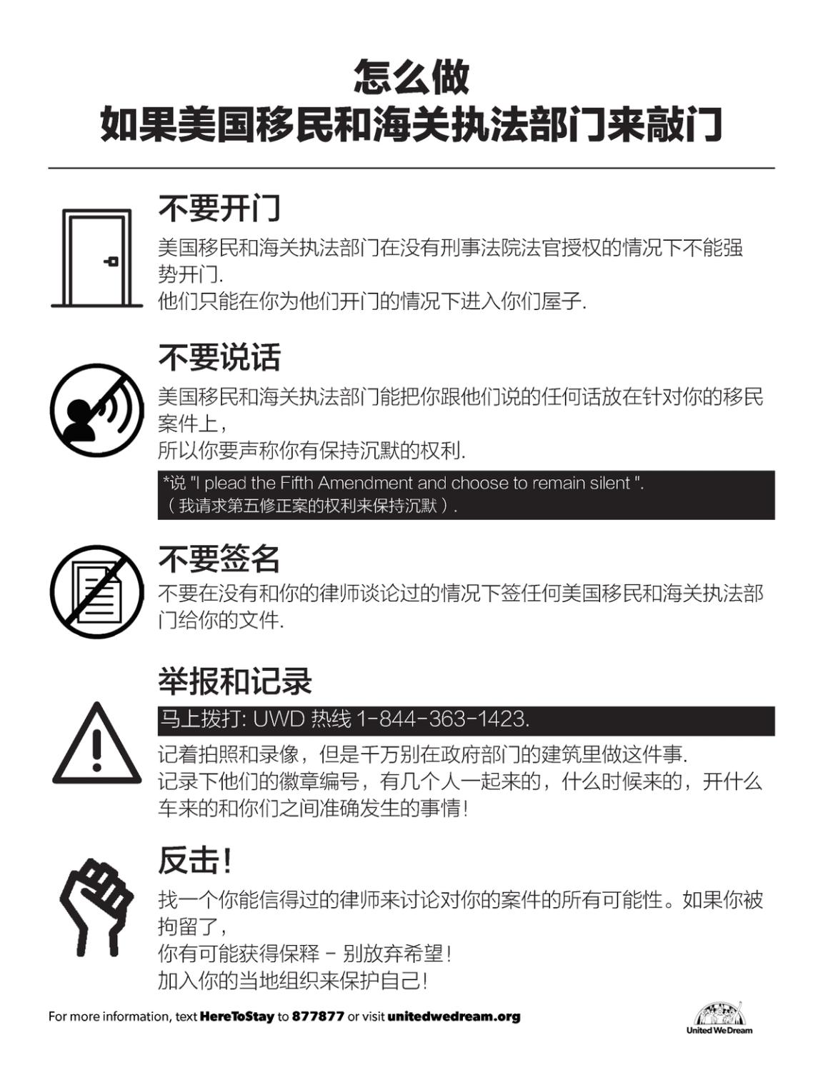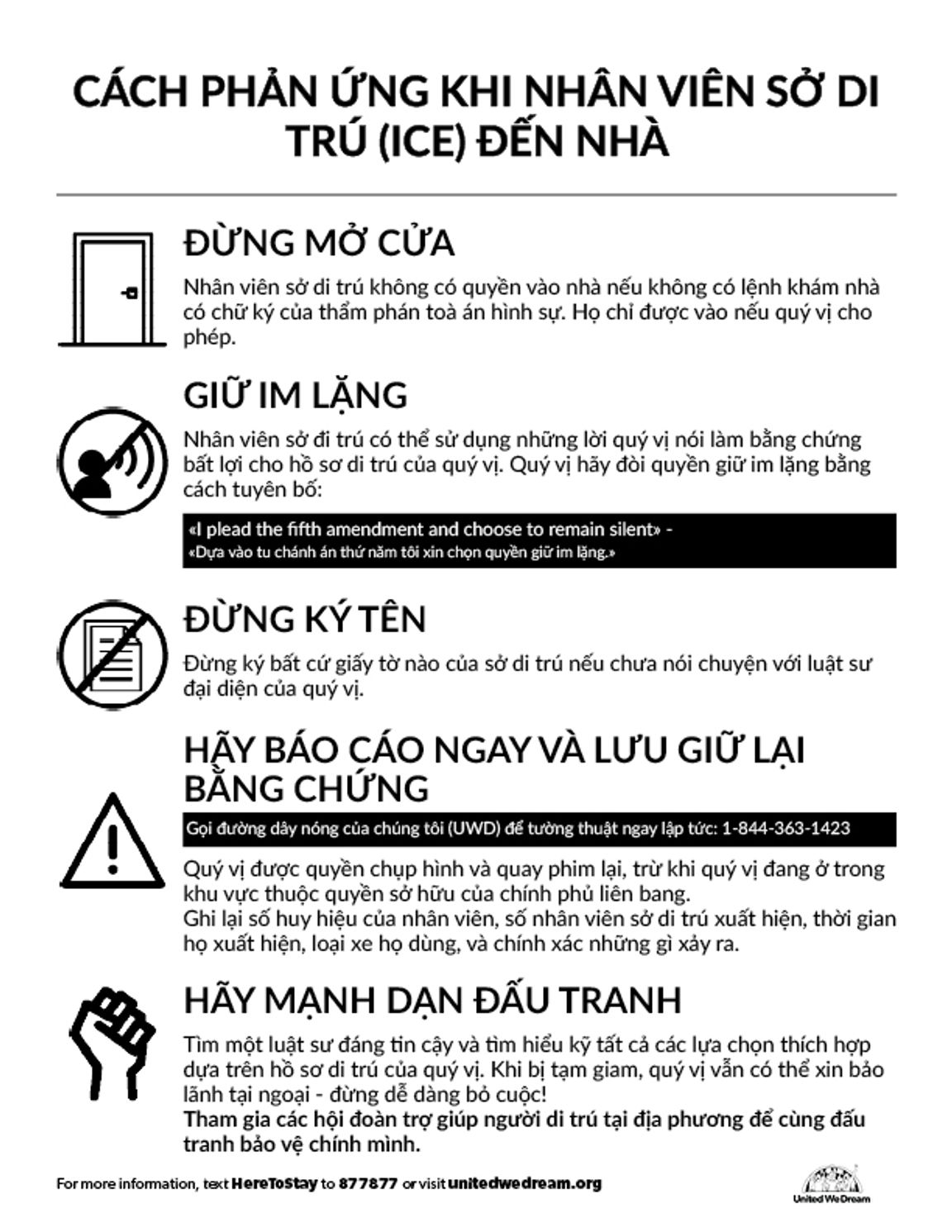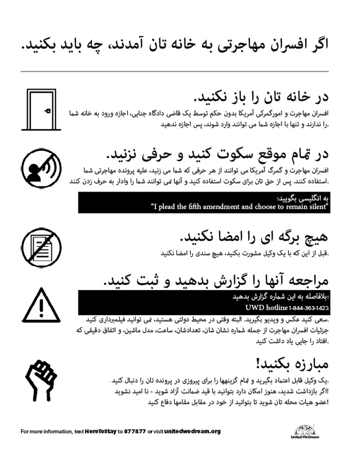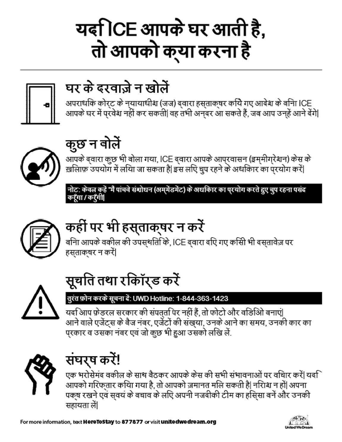 Use resources below to print out a print-friendly version of this page to tape on or near your door. That way, if an immigration officers approaches your home, you will be prepared and know what to do.