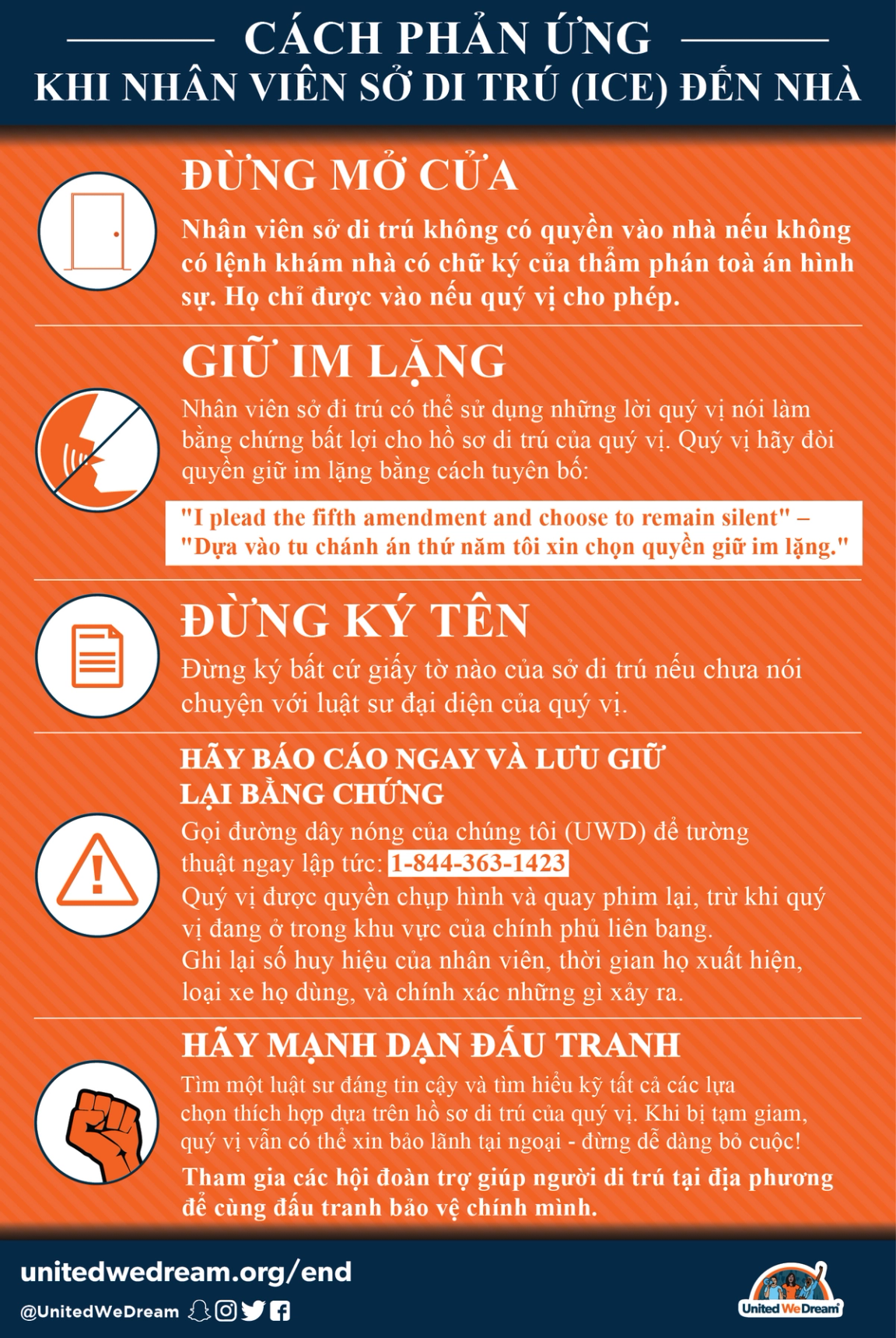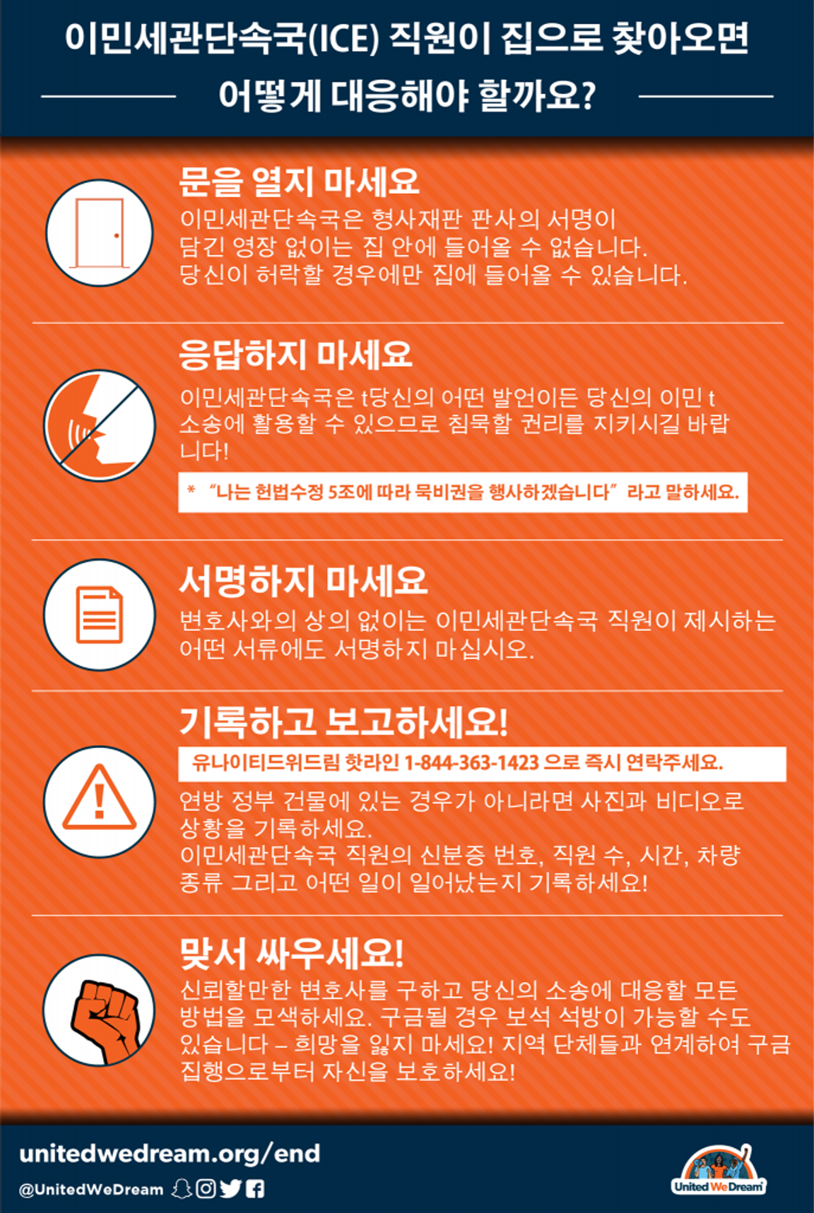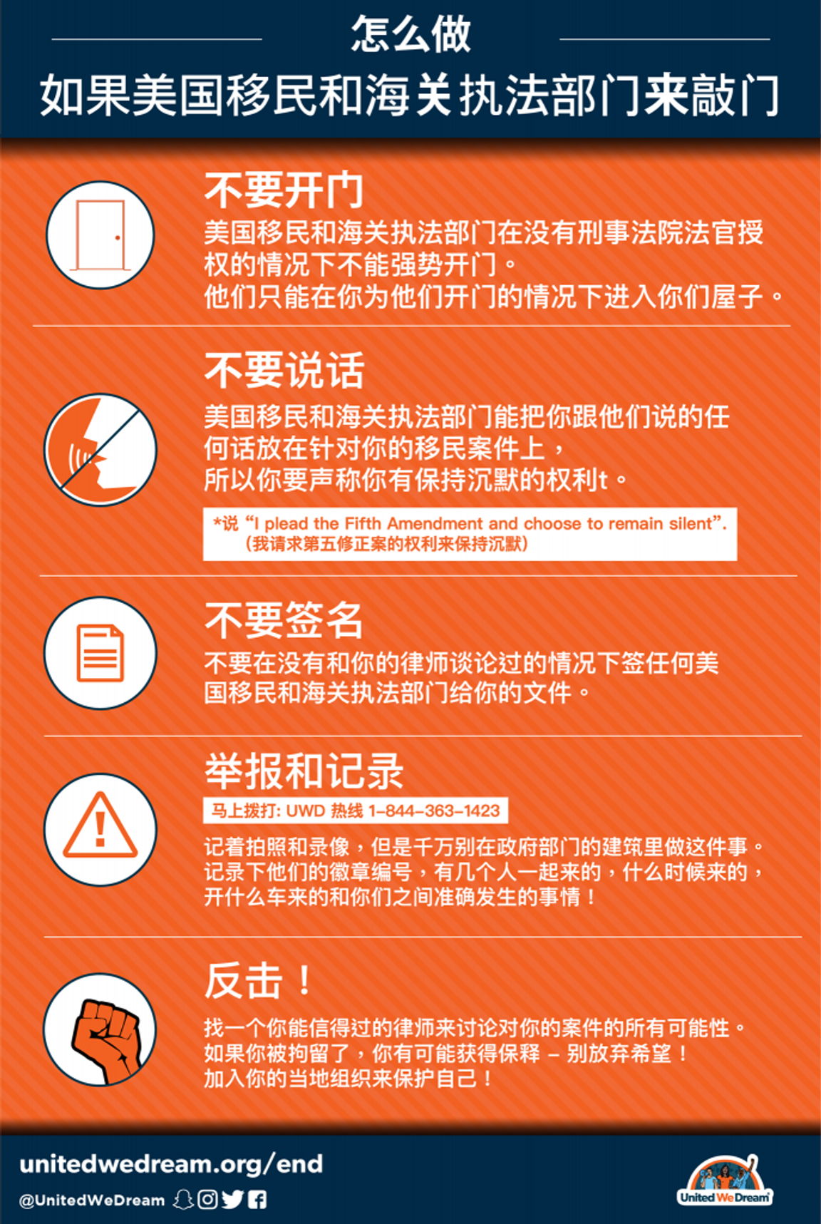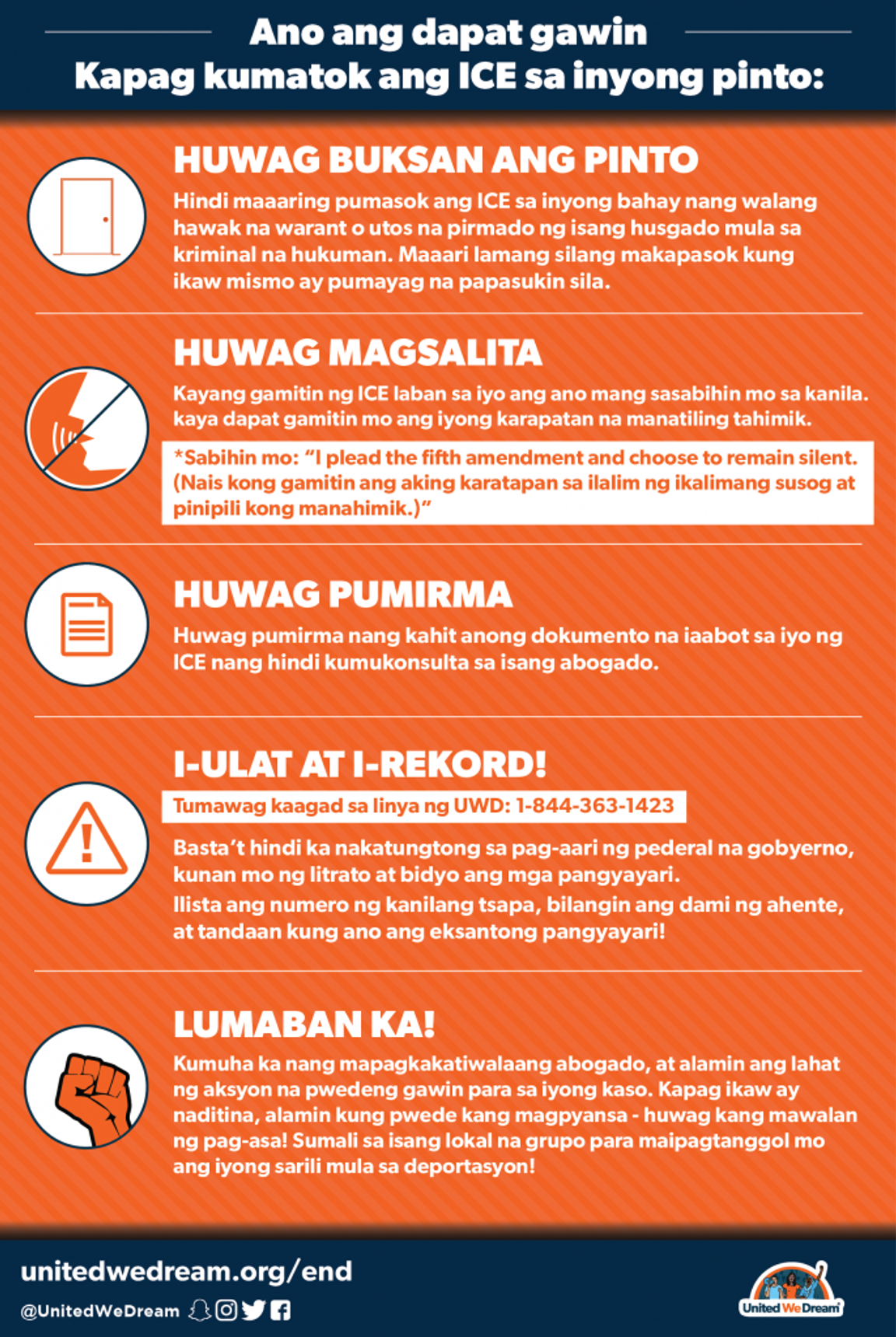 Use resources below to print out a print-friendly version of this page to tape on or near your door. That way, if an immigration officers approaches your home, you will be prepared and know what to do.