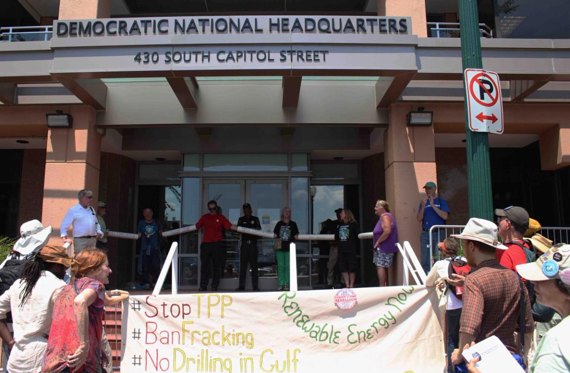 This afternoon, activists organized a lock down at the DNC HQ here in DC demanding Democrats take a stand against TPP and false solutions such as fracking and drilling.