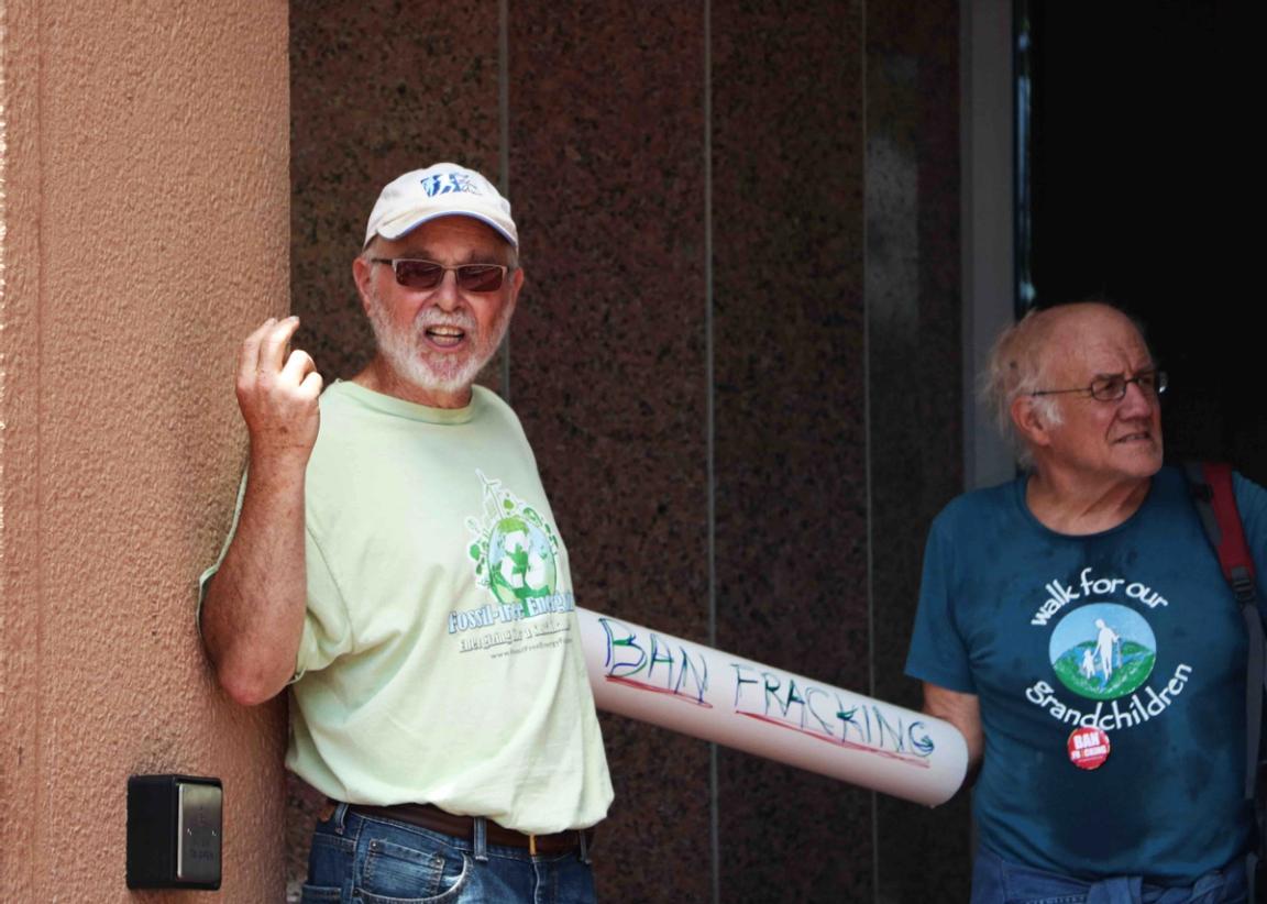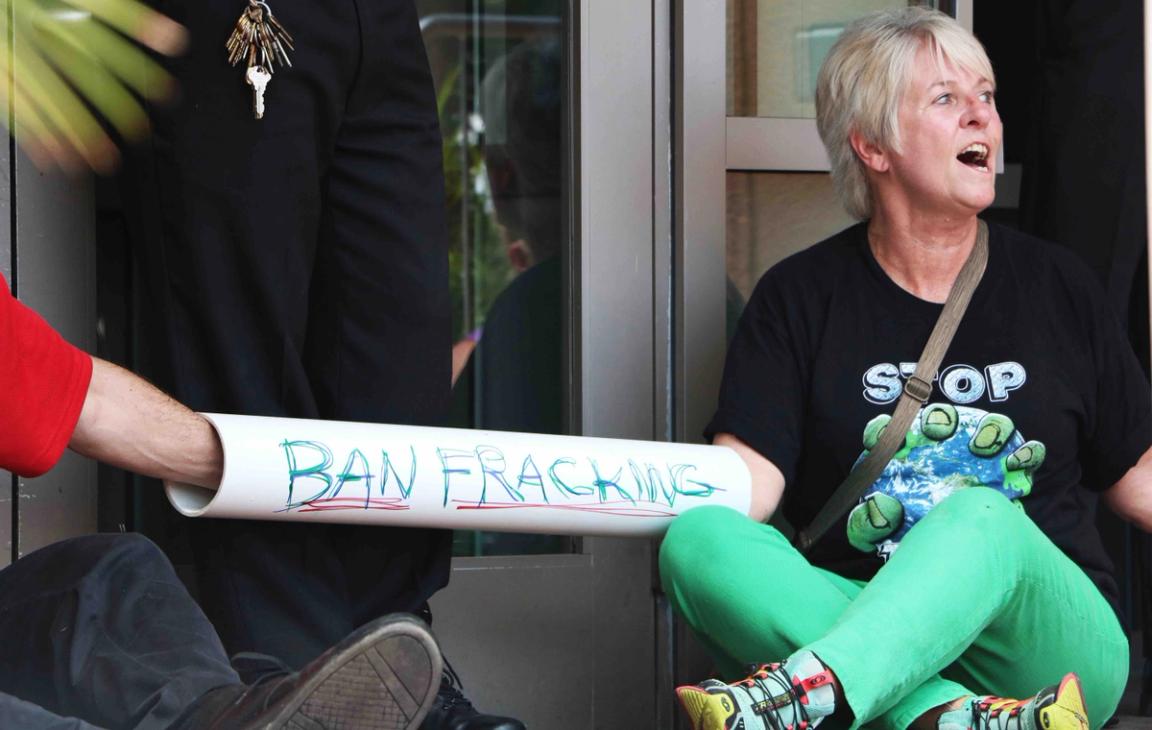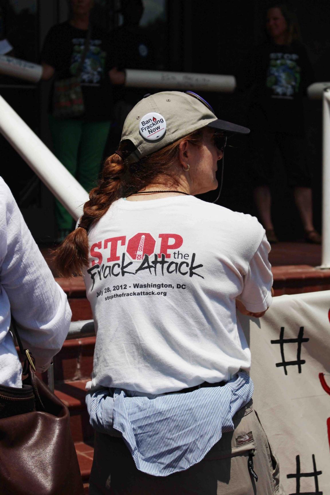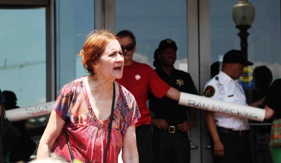 Sharing her story of land destroyed by fracking. Photo by Chris Owens.