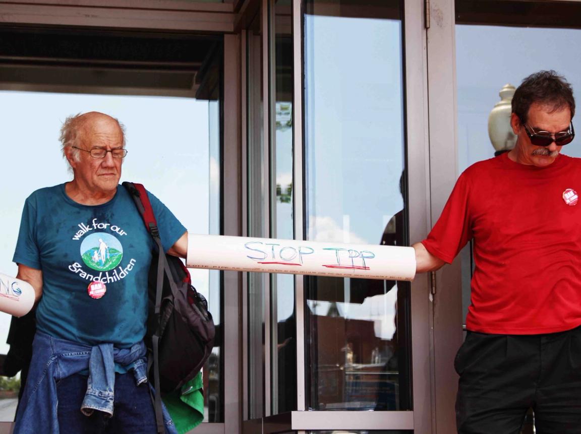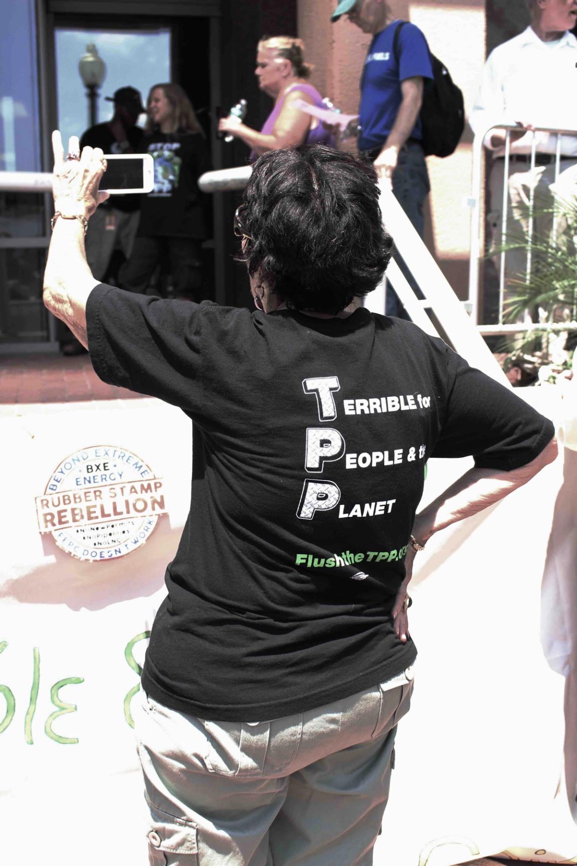 Reading demands for climate justice & a stand against TPP. Photo by Chris Owens.
