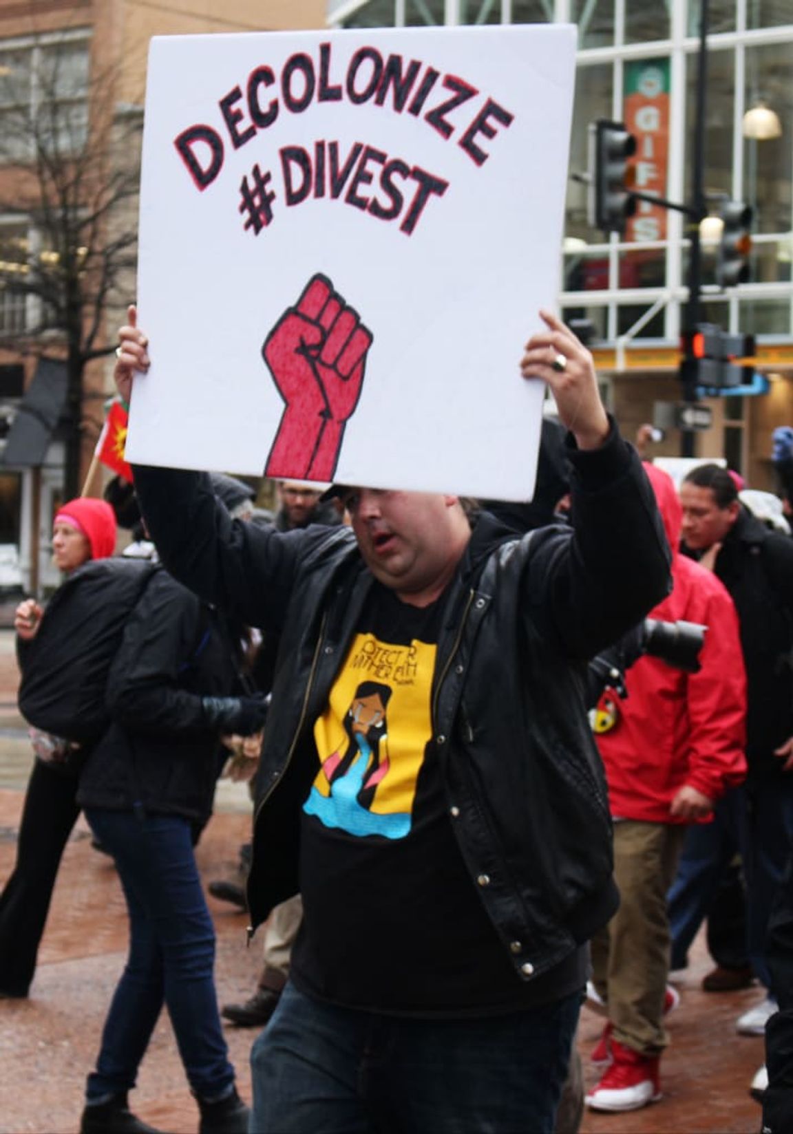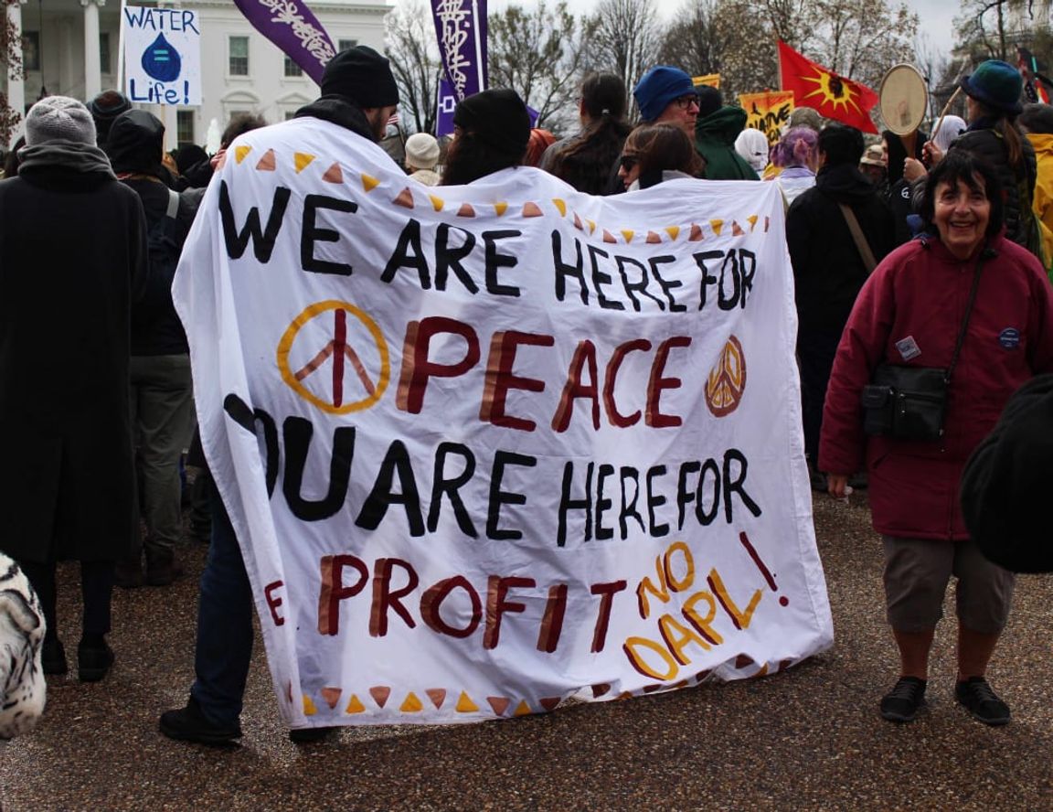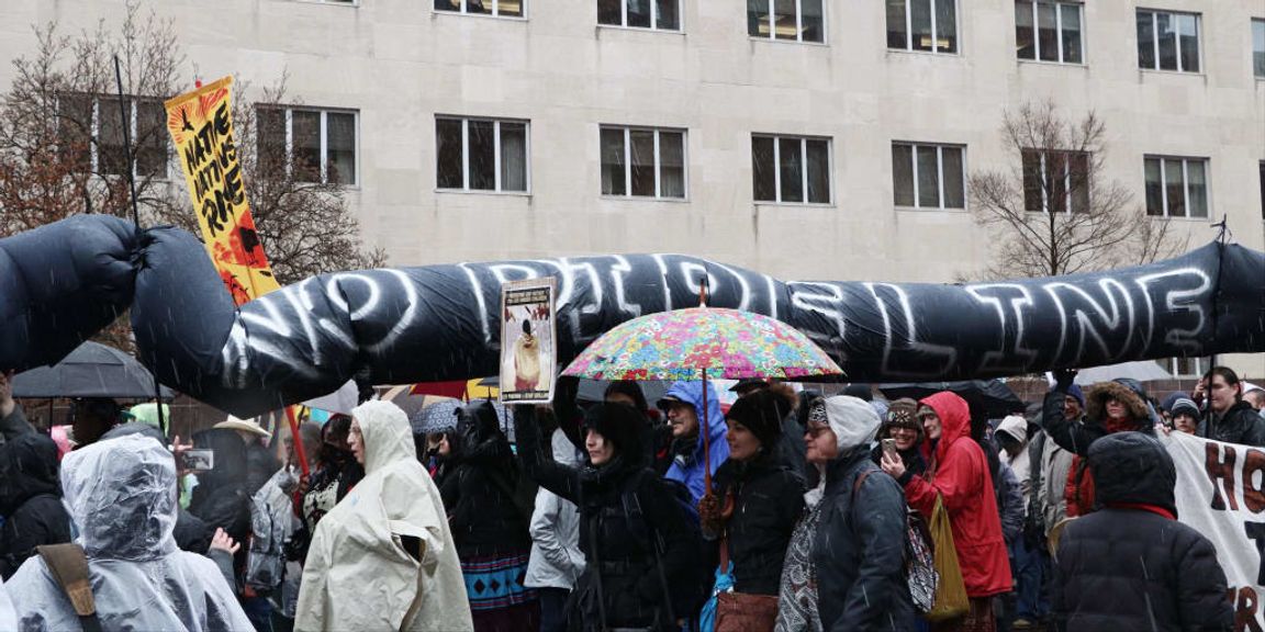 Today, hundreds if not thousands marched through the freezing rain and hail in the streets of Washington DC in protest of the Dakota Access Pipeline and the murderous colonial and militant corporatism used to torture both people and planet in the name of profit.