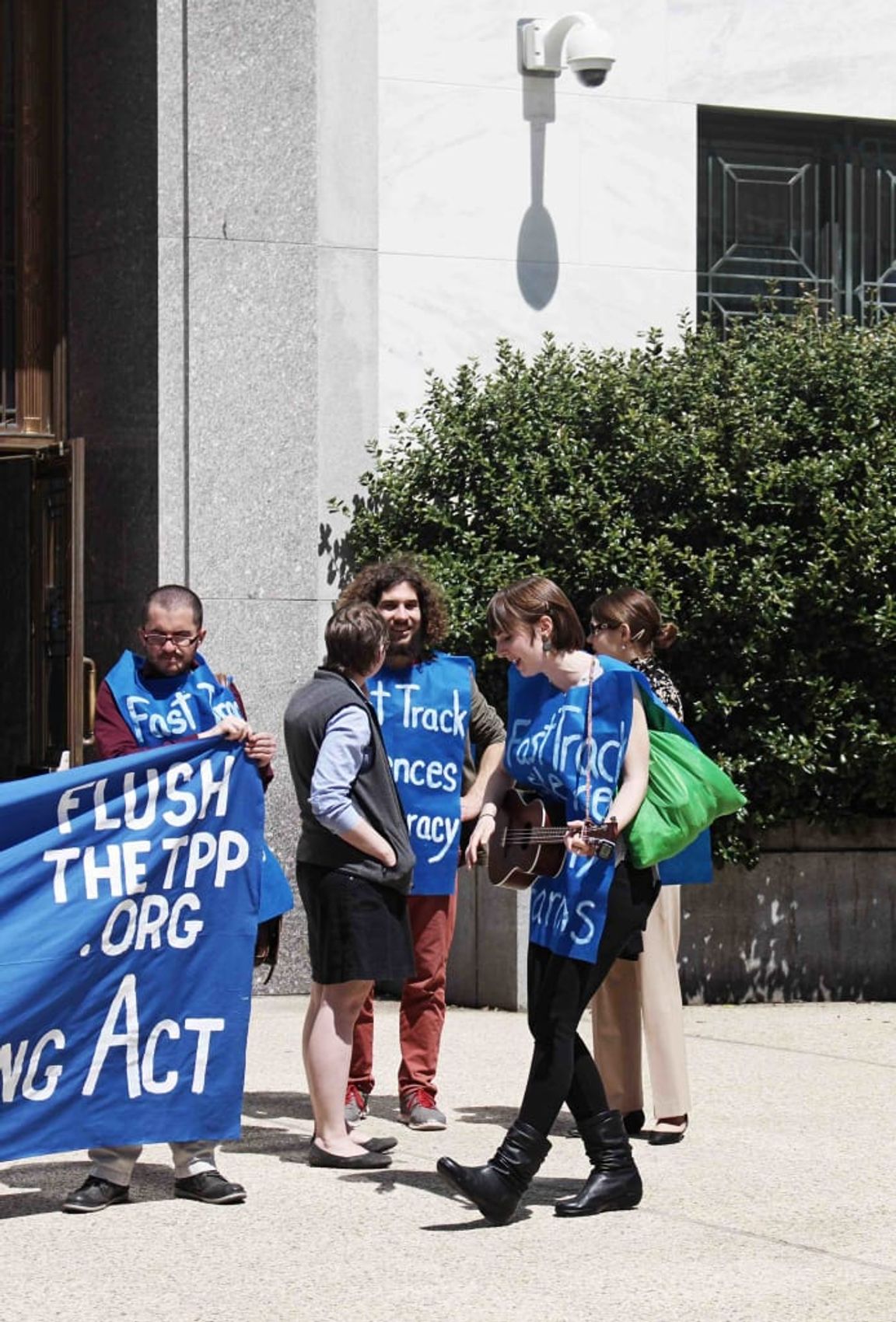 Today, Popular Resistance organized an action outside the Senate offices and on the Capitol lawn loudly proclaiming through chants and songs that we, the people DO NOT WANT TPP or Fast Track, no way, not ever, not today.