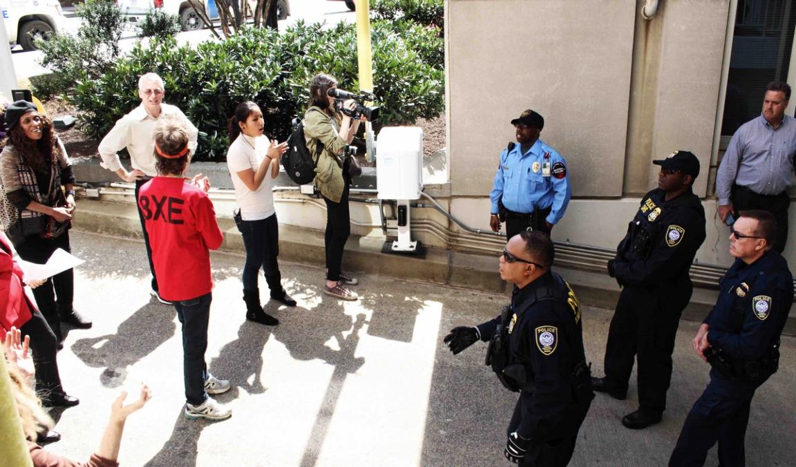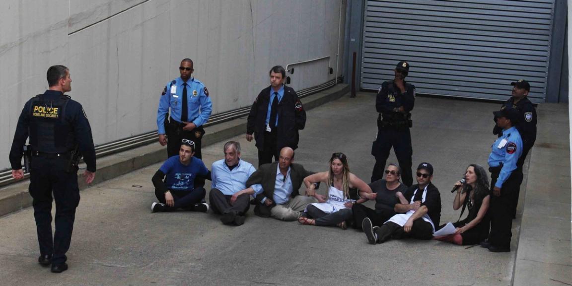 Homeland Security gave their typical three-warning announcement, roped off the area and proceeded to arrest the activists. Throughout this and indeed throughout the whole entire action, Bethany Yarrow sang, even while she was being arrested. She lead activists in beautiful renditions of “We Shall Not Be Moved” and crafted poetic sing-alongs on the fly. Although Valentina, her daughter, shed a few tears as her mother was taken away for standing up to corporate evil, she stood proudly on the front lines with activists as they chanted and sang. She will doubtlessly grow up to be an awesome woman.