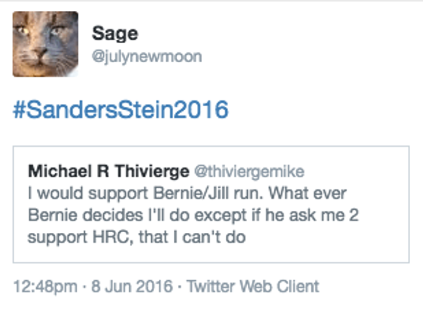 Sanders may run as an independent, although his campaign has denied this possibility several times. Stein has reached out to Sanders on numerous occasions, and as far as I understand it, has yet to hear anything back. I know many people, myself included, that would wake up with a considerable sense of empowerment should Sanders and Stein run together. Twitter even erupted with the hashtag #SandersStein2016 to support the idea. But all of this remains to be seen. And ultimately, all of this is not really what’s important.