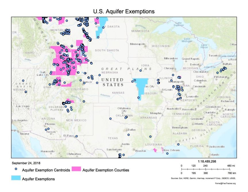 Fracking operations often use “injection wells” to pump wastewater underground into the rock formations where oil or gas was just pumped out. This practice is not only linked to earthquakes and massive sinkholes but also to groundwater contamination. Because duh. Let’s set the scene here. Fracked wastewater contains radioactive materials as well as corrosive salts. It also includes “chemicals whose identities are considered trade secrets and which even the U.S. Environmental Protection Agency can’t list.” We wouldn’t want y’all stealing the secret to slowly poisoning your own groundwater, now would we?! A small consolation though it may be, companies are supposed to inject wastewater back into geologic formations that don’t contain any usable groundwater. However, there’s a loophole – in the Safe Drinking Water Act of all places. This loopholeallows oil and gas companies to apply for an “aquifer exemption.” These exemptions give fracking operations the right to inject toxic wastewater wherever they feel like it – including into aquifers that potentially hold high-quality drinking water. Yes, really. Frack Tracker put together a map (shown below) of all the areas in the country that have these exemptions. Spoiler alert: there are an astonishing number of exemption sites and even entire exemption counties. Now, this would be bad news even if we had enough water to go around. But we really, really don’t.